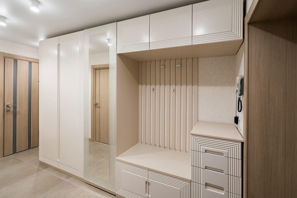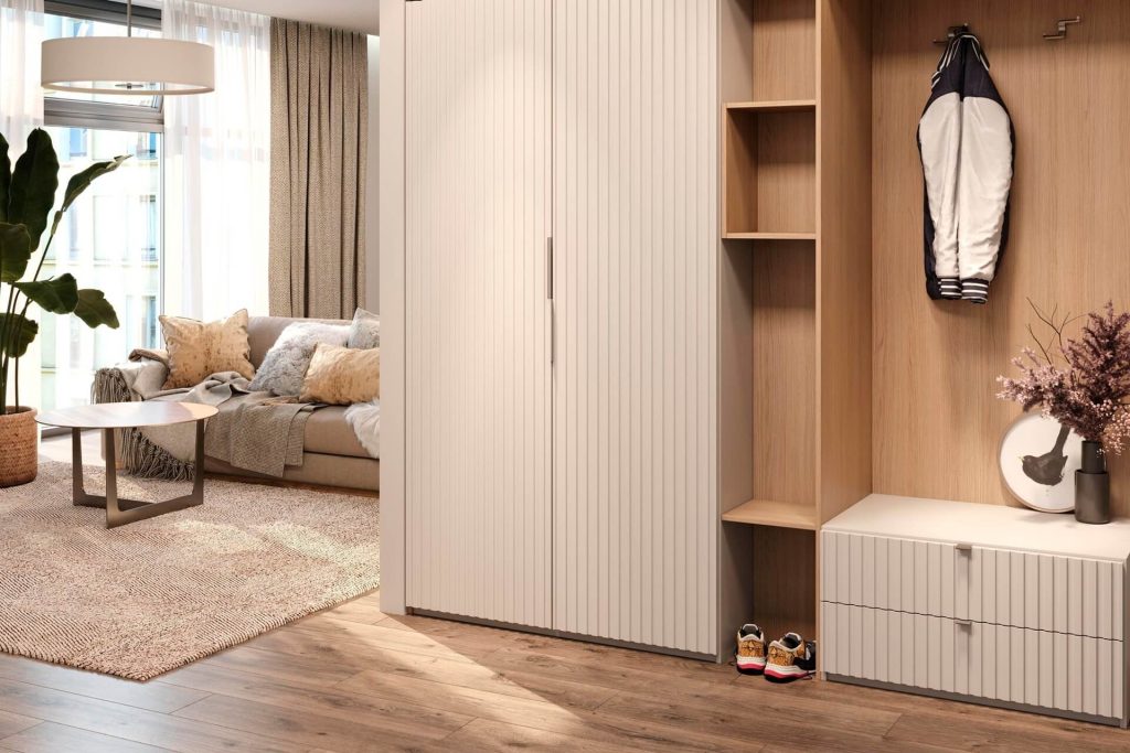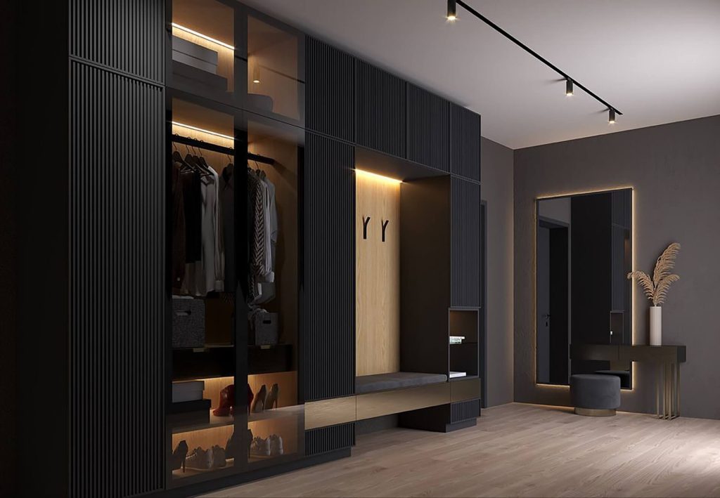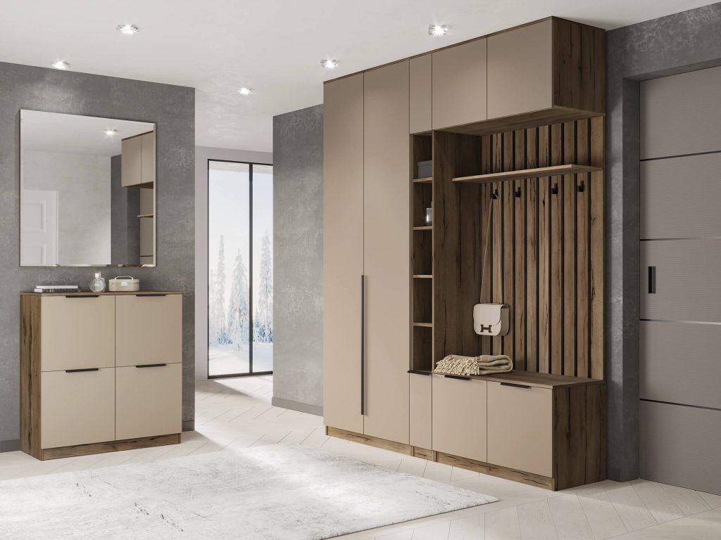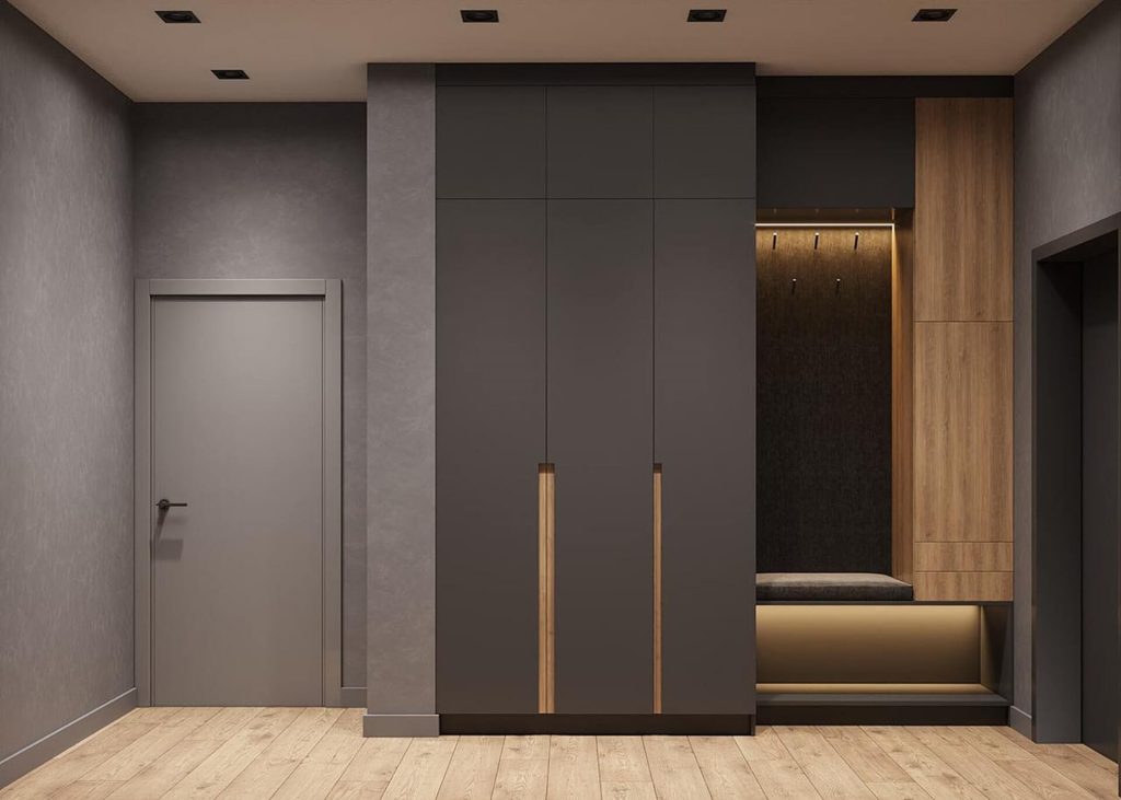 A unique designer project for an Italian-style bathroom interior. It combines pleasant tones, stone textures, beautiful wooden elements, and a distinctive lighting design. Ample greenery adds a special touch to the overall atmosphere.