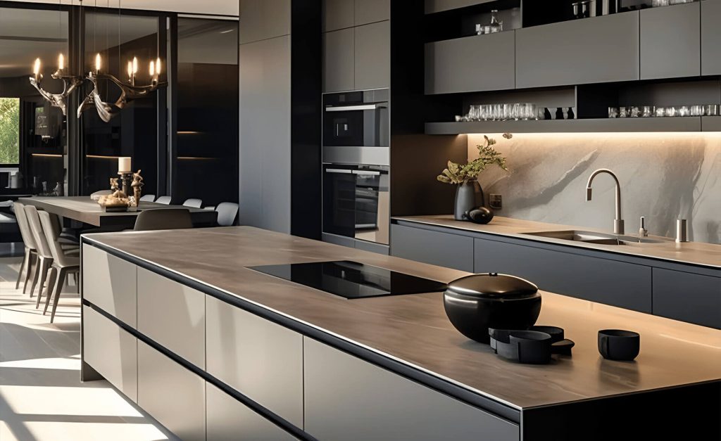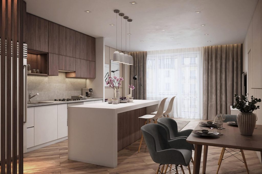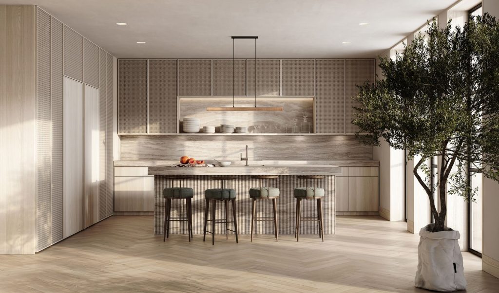 A unique designer project for an Italian-style bathroom interior. It combines pleasant tones, stone textures, beautiful wooden elements, and a distinctive lighting design. Ample greenery adds a special touch to the overall atmosphere.